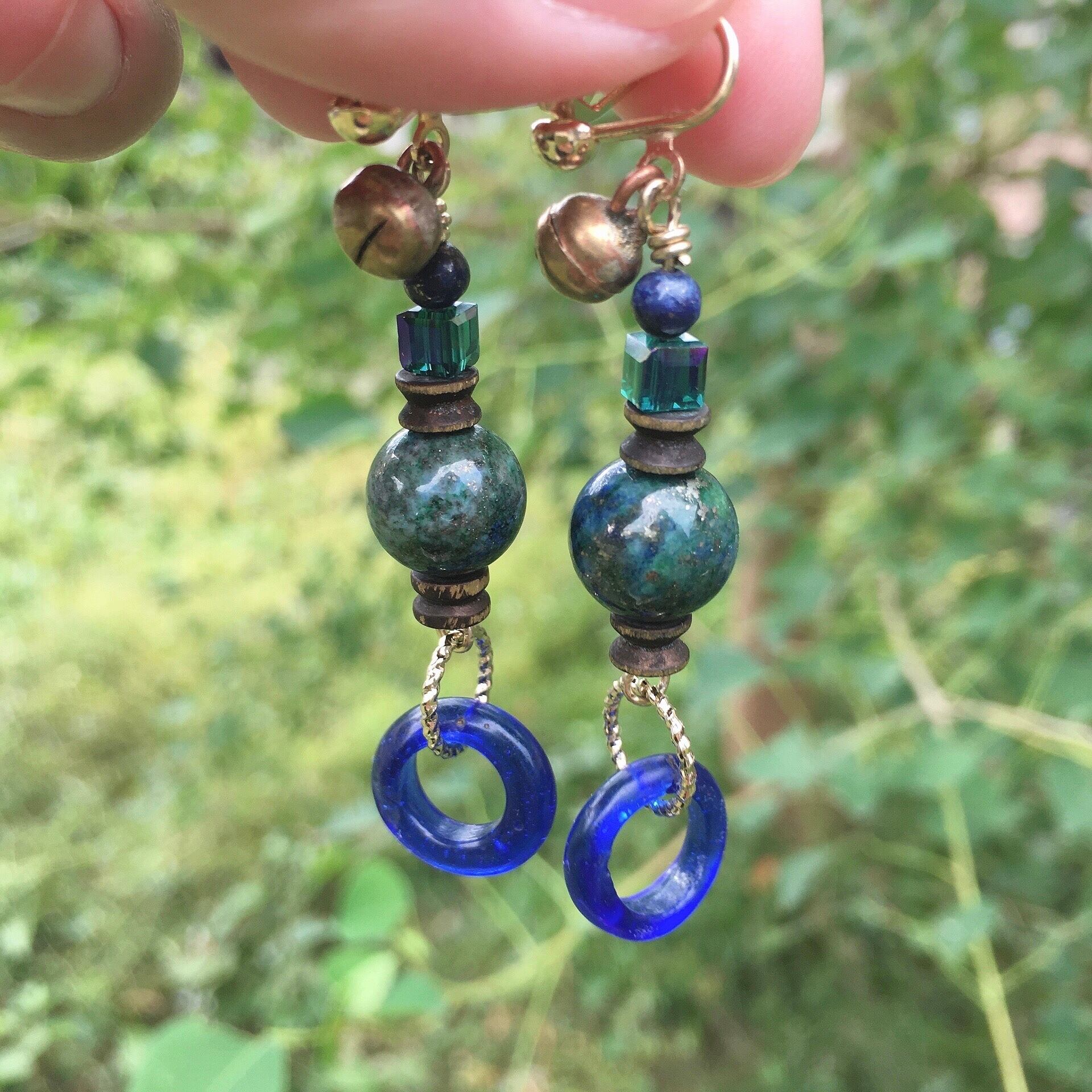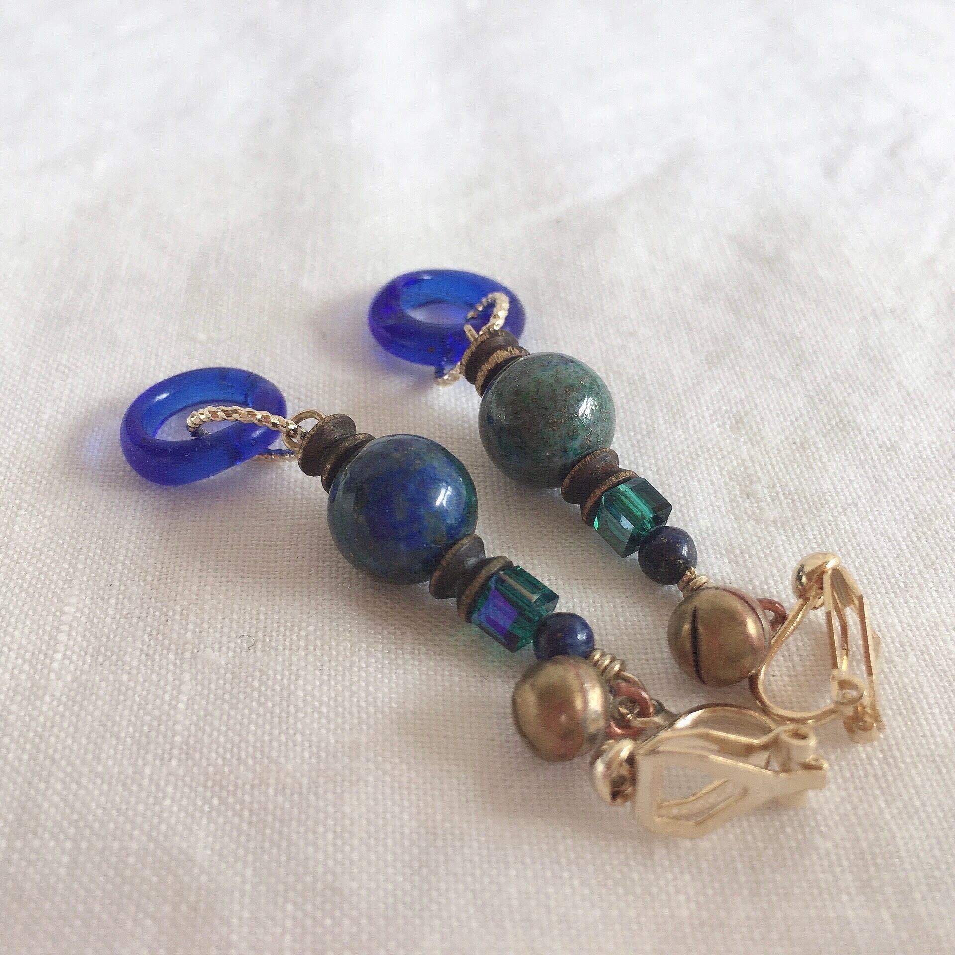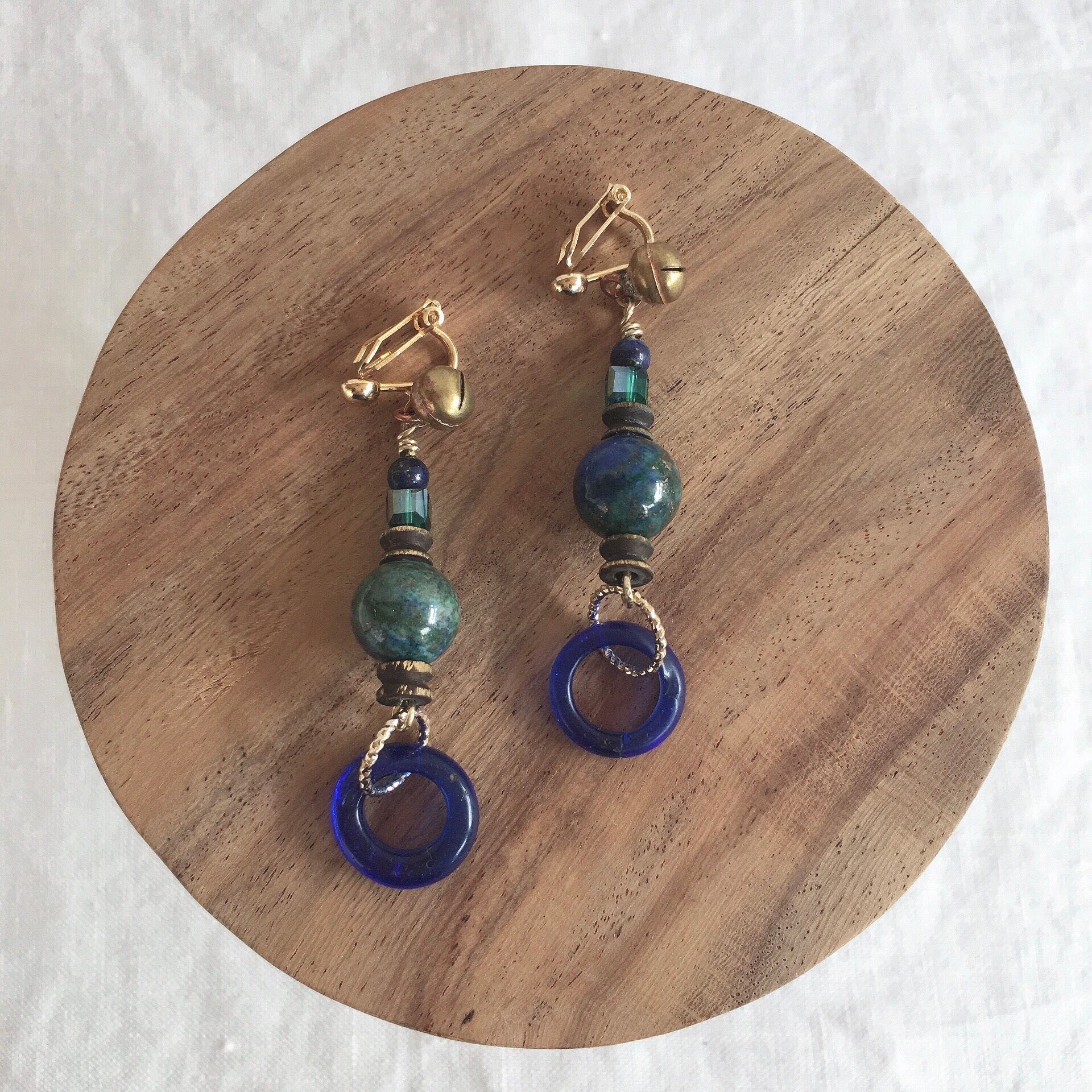 磨りガラスのようなマットな質感のビーズですが光にかざすと瑠璃色に透けて美しいです