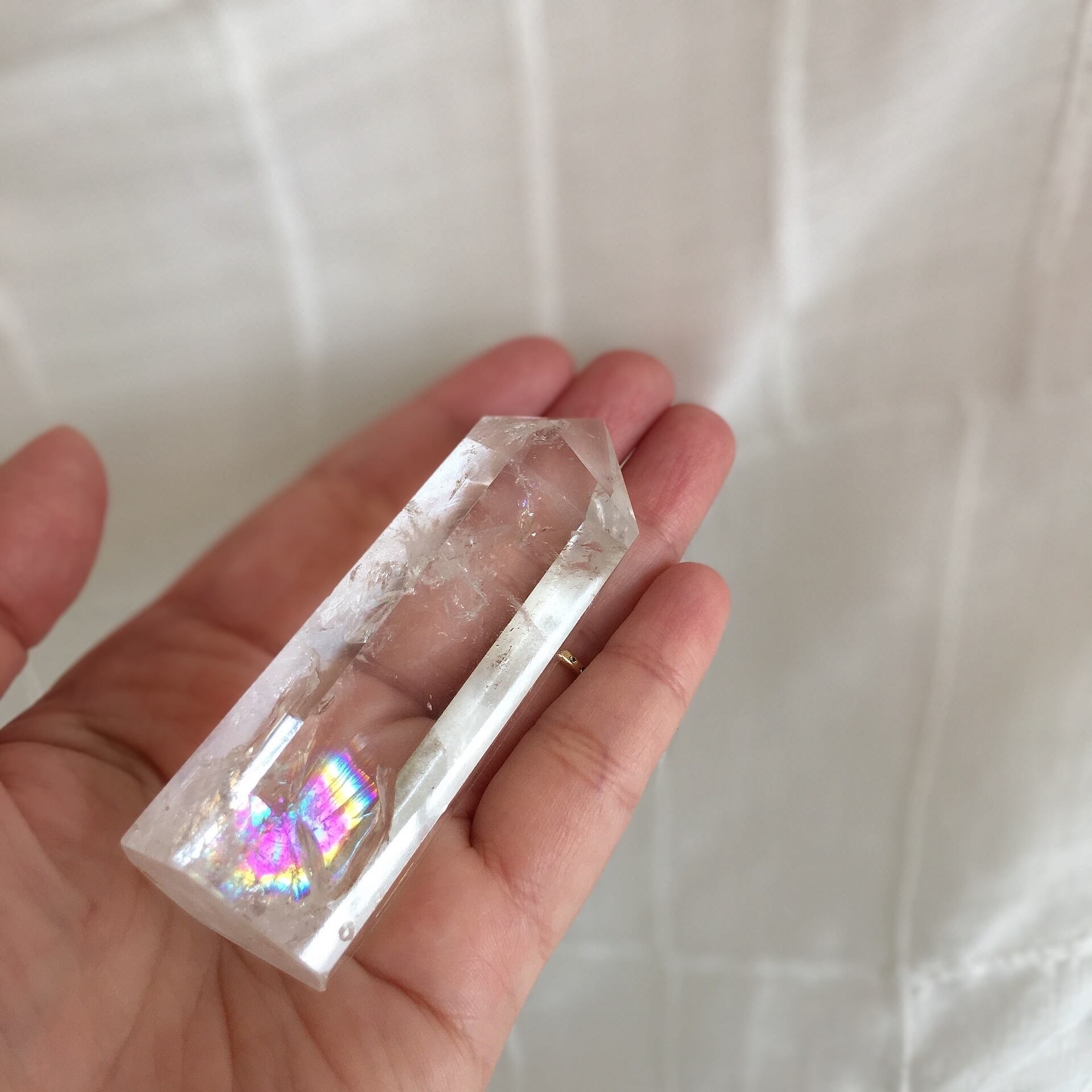また虹だけで無く、鏡の様なプラチナ色に見える箇所もありとても美しい水晶です。